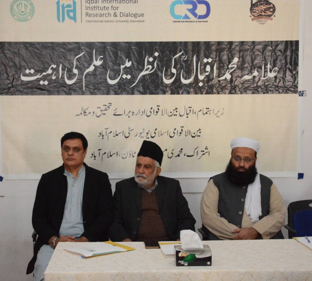 The Iqbal International Institute for Research and Dialogue (IRD) organized an academic lecture titled “علامہ اقبال کی نظر میں علم کی اہمیت” at Madrassa Muhammadi Masjid, Shehzad Town, Islamabad. Mr. Nasir Farid, Additional Director IRD, introduced the Institute,
